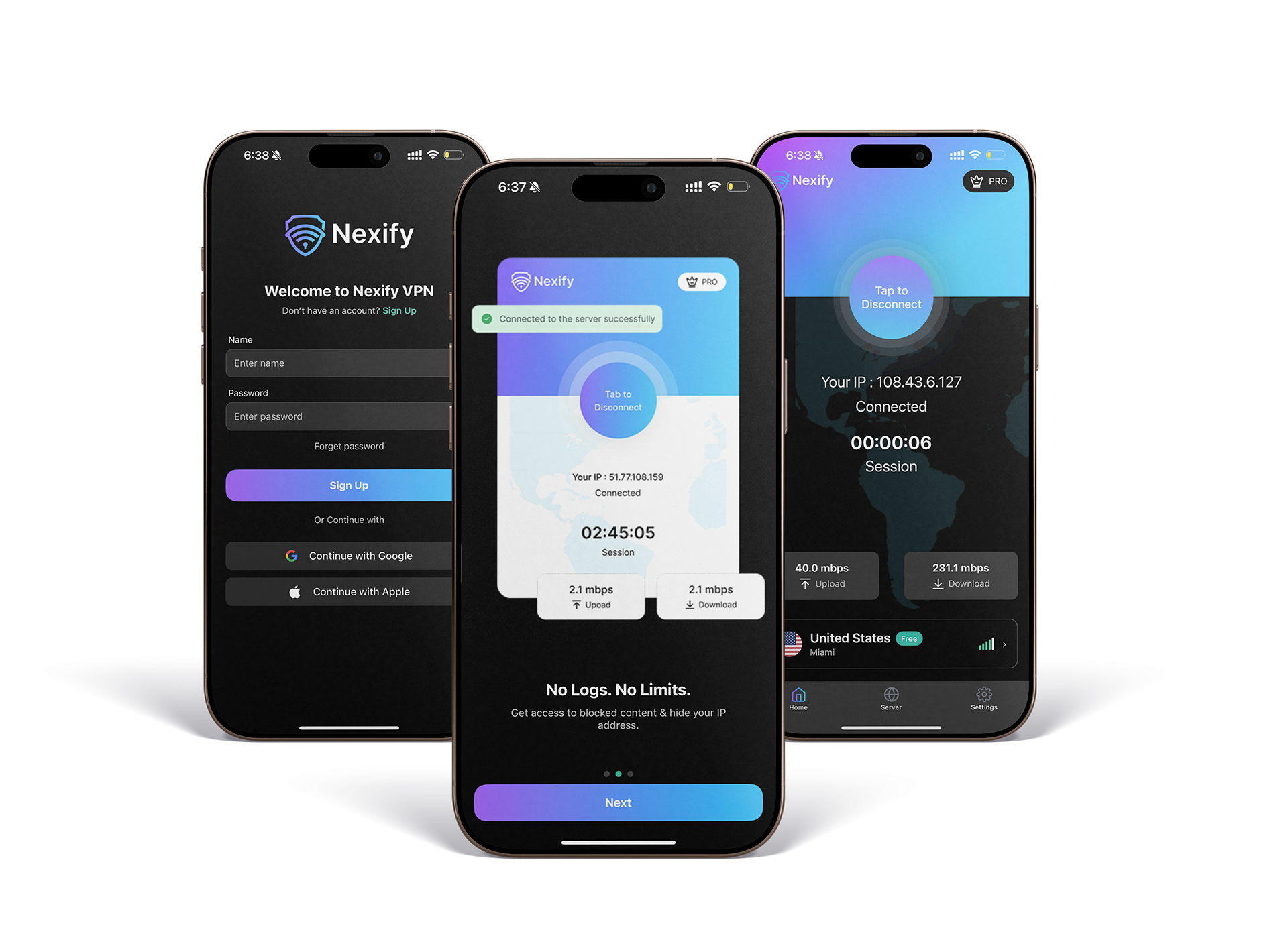 Nexify VPN is designed to protect your privacy while giving you unlimited freedom online.